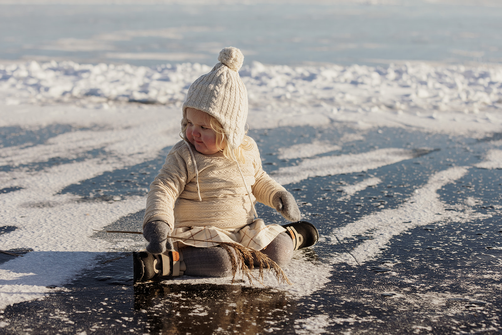 En av de mest älskade funktionerna är den stora bälgplösen som håller snön och slasket kvar på utsidan och som också gör att även de minsta barnen kan ta av och på den själva med lätthet. Vi har också inkluderat invändiga förstärkningar för att säkerställa att stöveln behåller sin form, och det vattentäta Kavat-läder vi använder är extra slitstarkt. För att ge extra komfort och värme har vi använt norsk ull-mix både i skaftet och foten. Den tjocka innersulan i filt av mixad ull är som en kärleksfull omfamning för barnens fötter.
